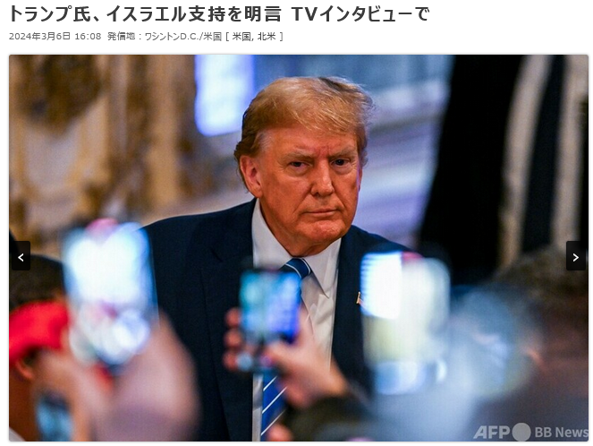 トランプ氏、イスラエル支持を明言 TVインタビューで 3/6(水) 16:10配信